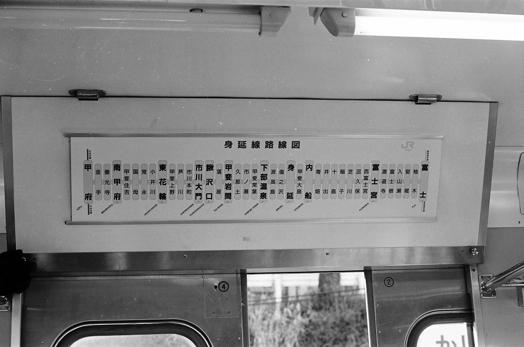 車内掲示の路線図、甲府まであと一息