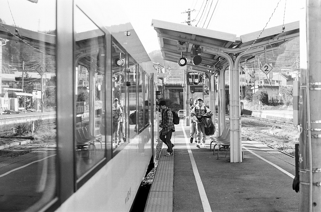 乙女駅に停車、各駅を丁寧に止まっていきます