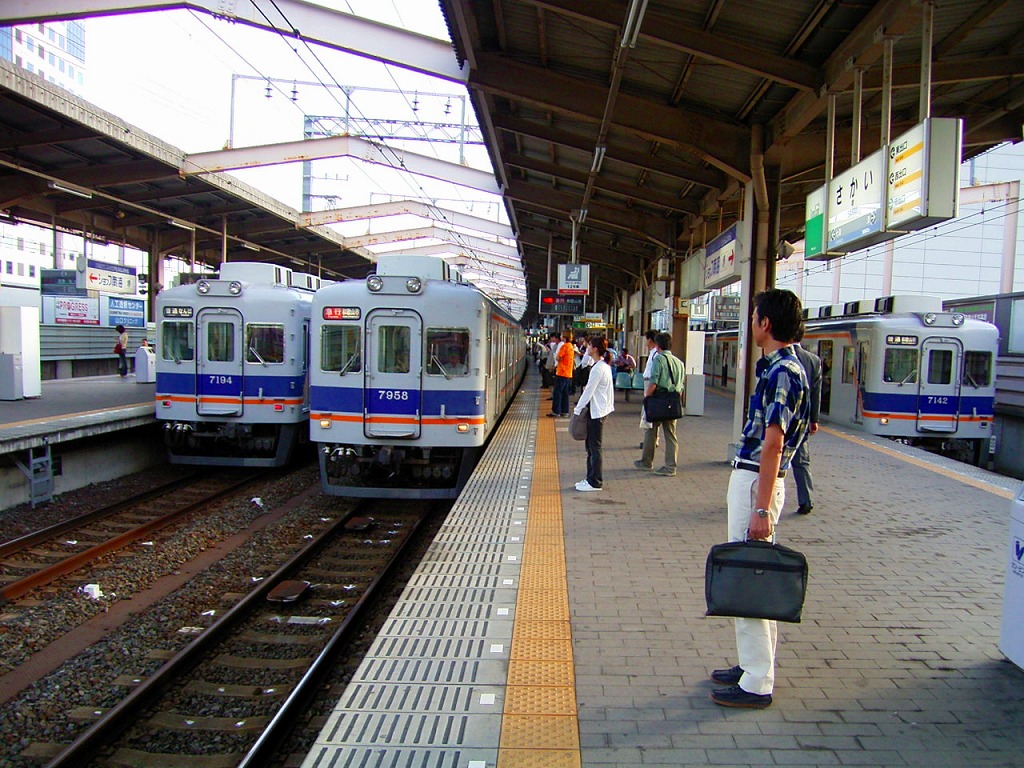 堺駅で後続の急行に乗り換え
