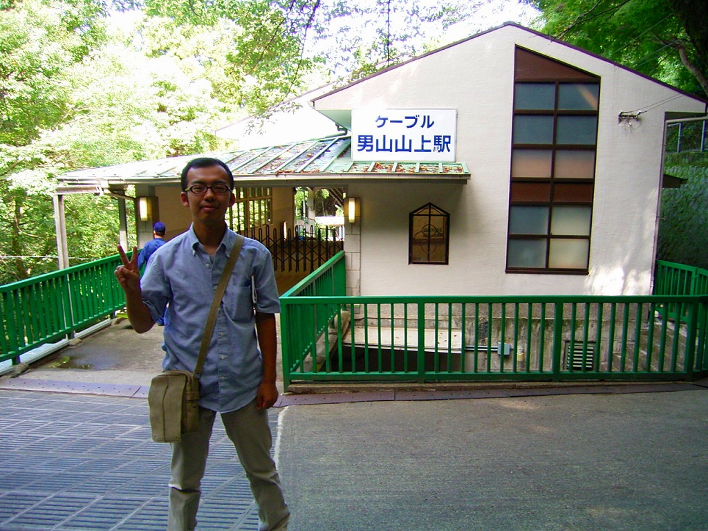 男山山上駅で記念撮影
