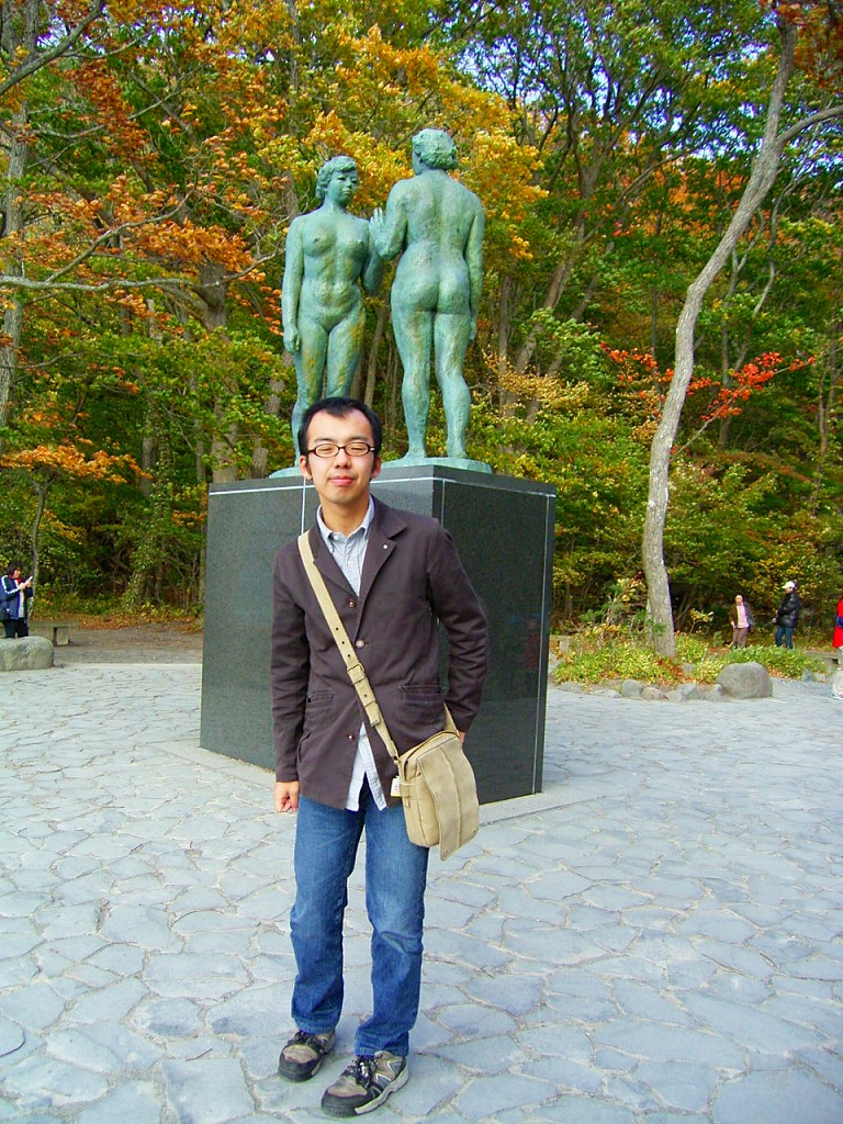 乙女の像をバックに記念撮影
