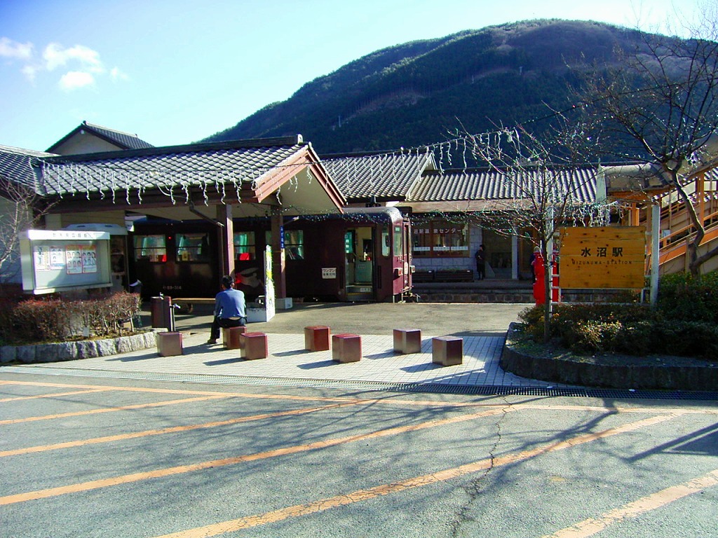 木造駅舎の神戸(ごうど)駅前には