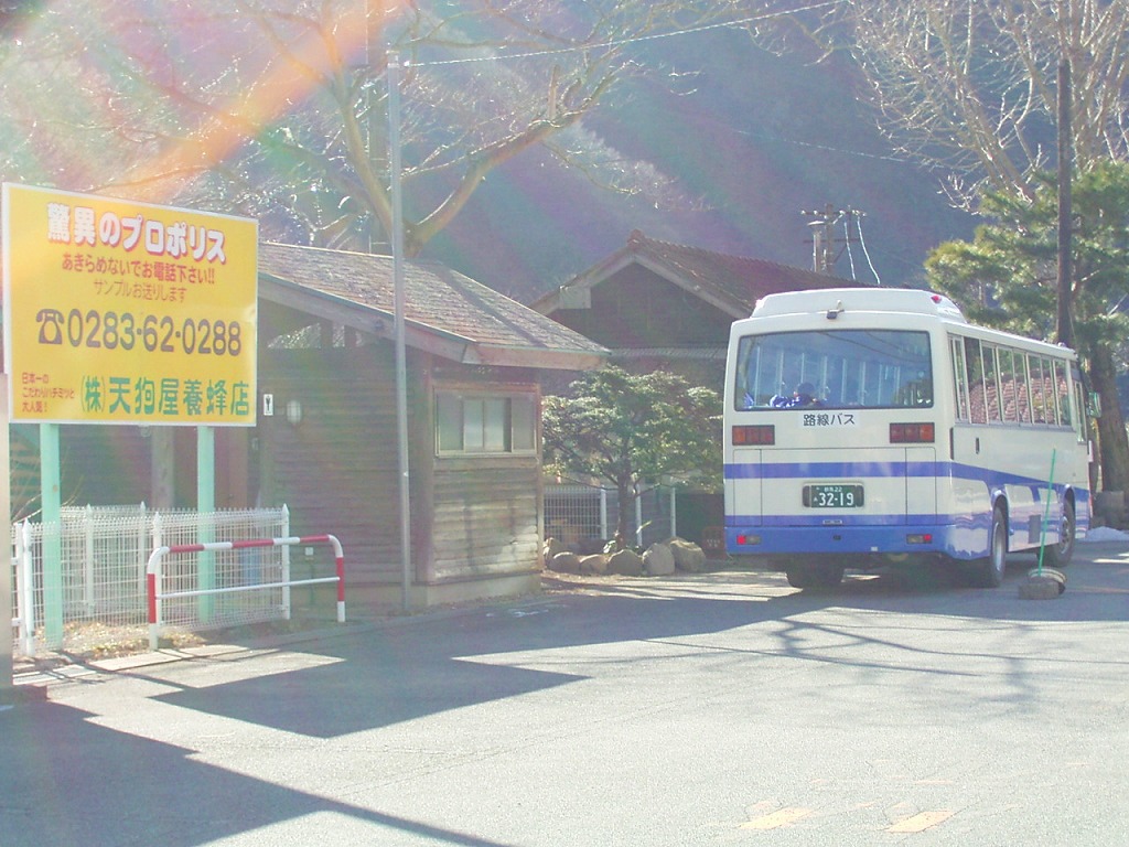 富弘美術館に向かう町営バスが停車中