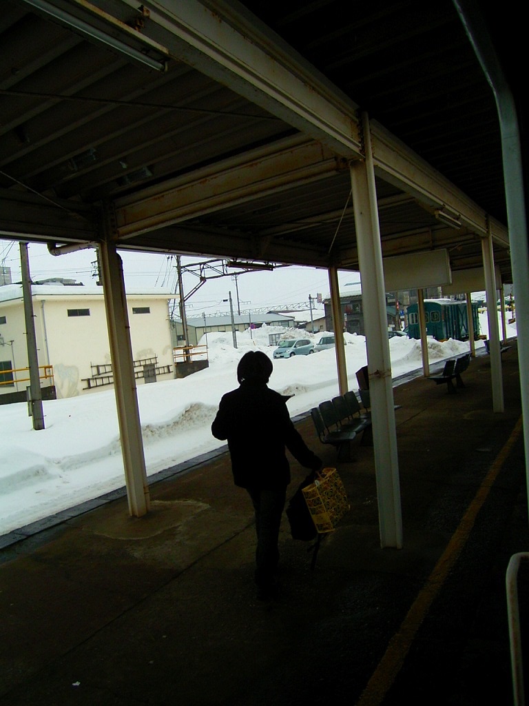 乗客も寒そうに降りていきます