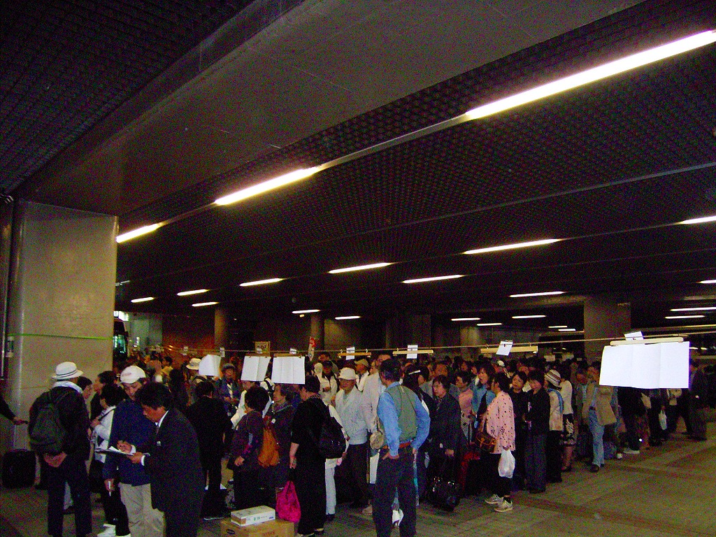 バスツアー出発で大賑わいの新宿都庁駐車場