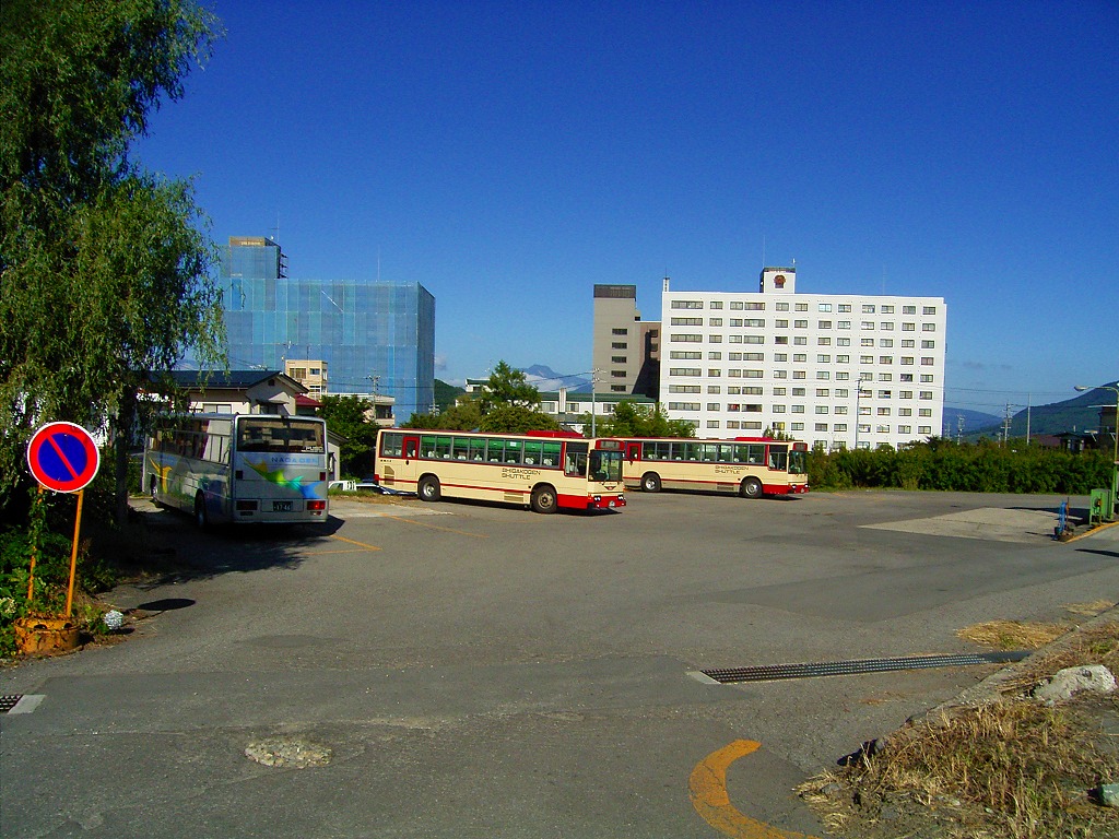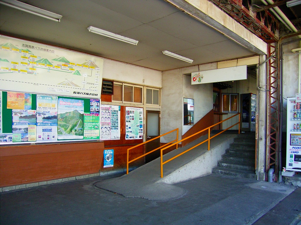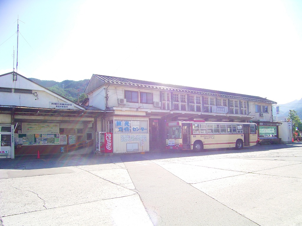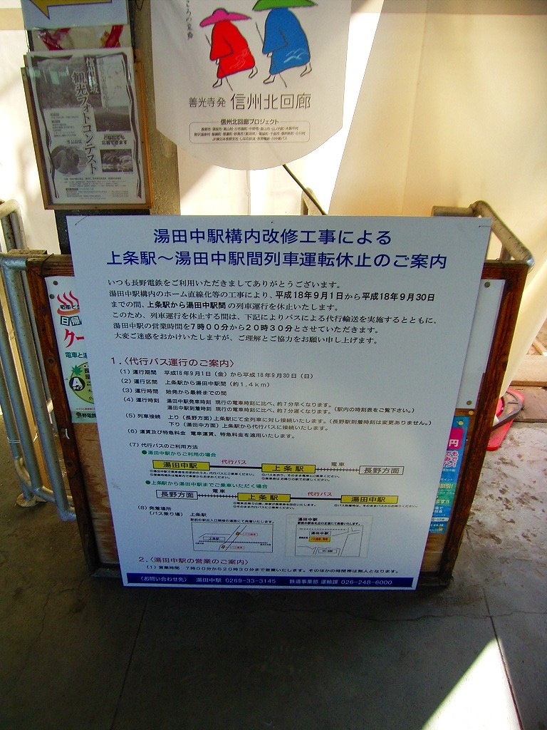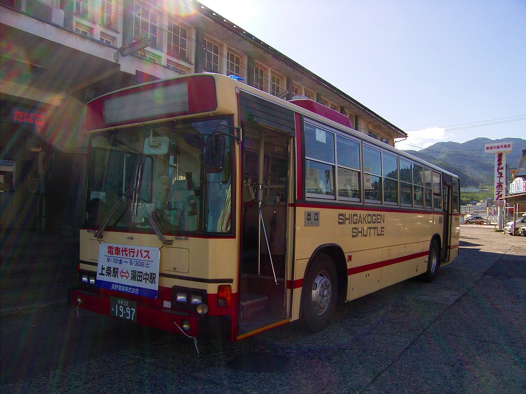 朝食の前に改修工事でバス代行中の湯田中駅へ