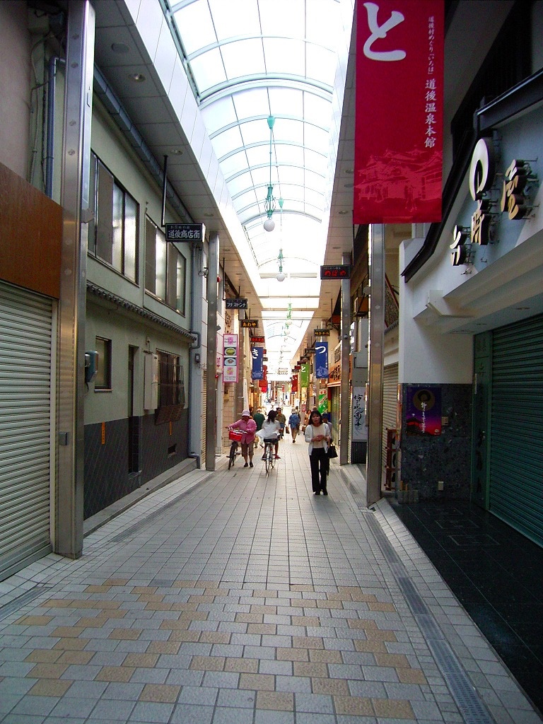 道後の商店街を歩いて駅に戻ります