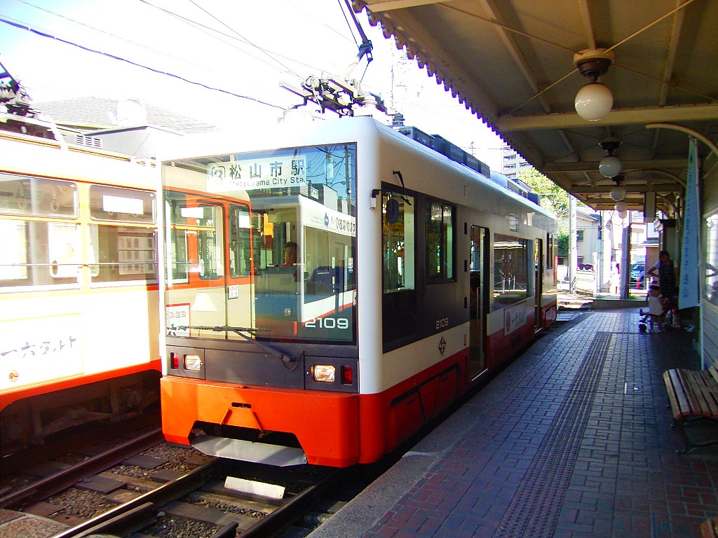 低床車を見送り、松山駅行を待ちます