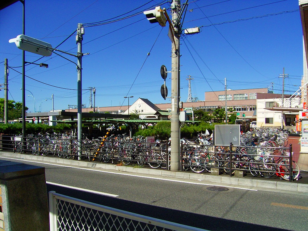 踏切を渡り