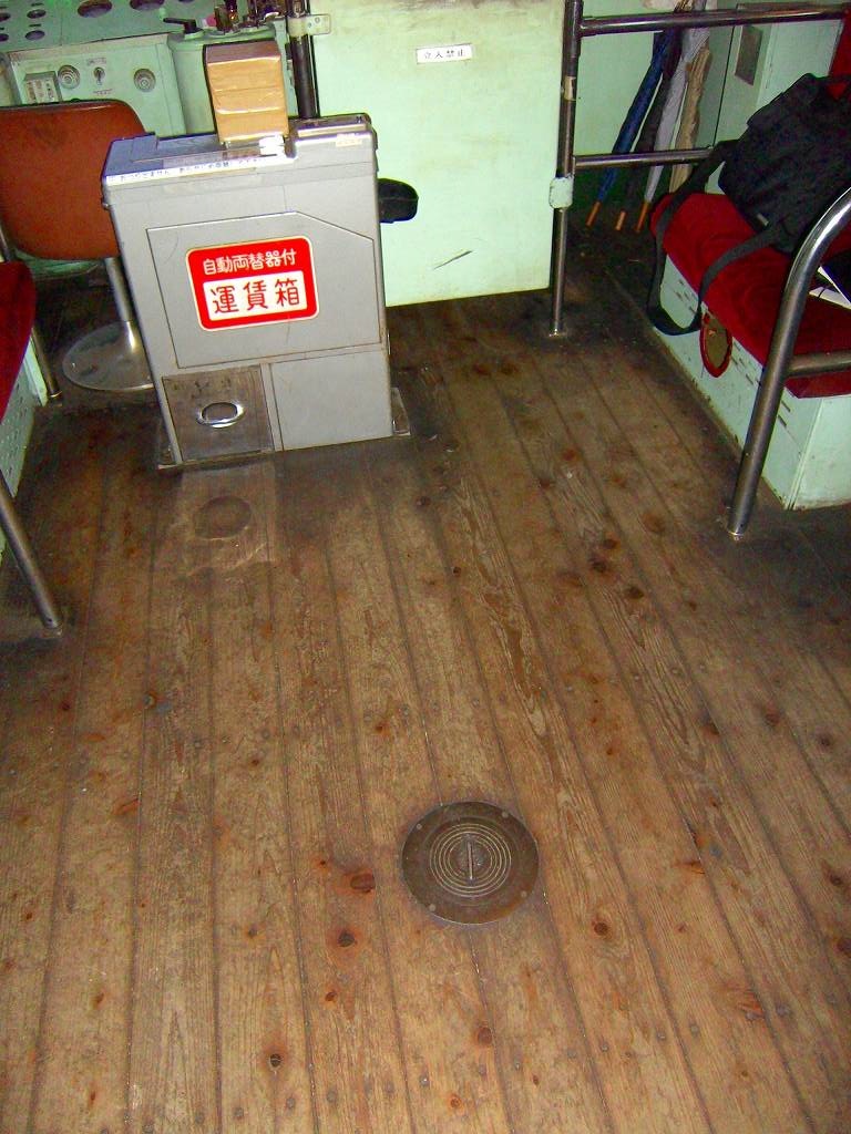 木製の床には台車軸が突き抜けています