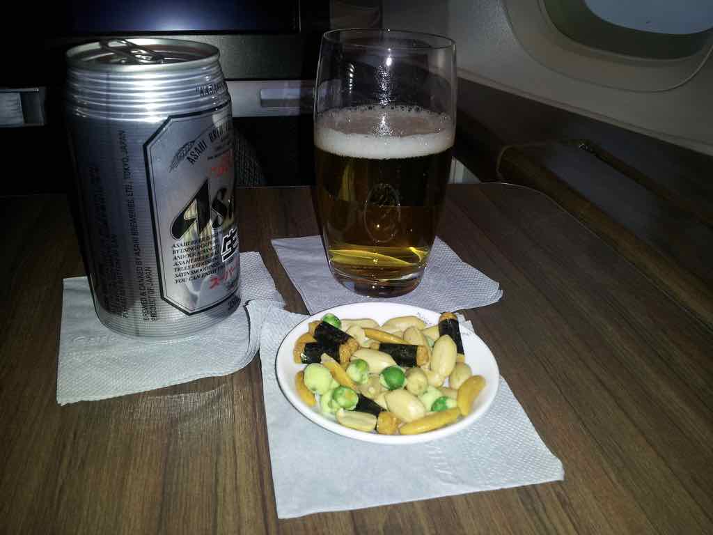 ビールと温かいナッツが運ばれてきて