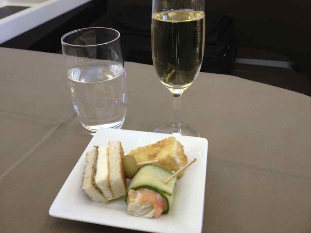 大空に飛び立ち、お楽しみの機内食の時間です