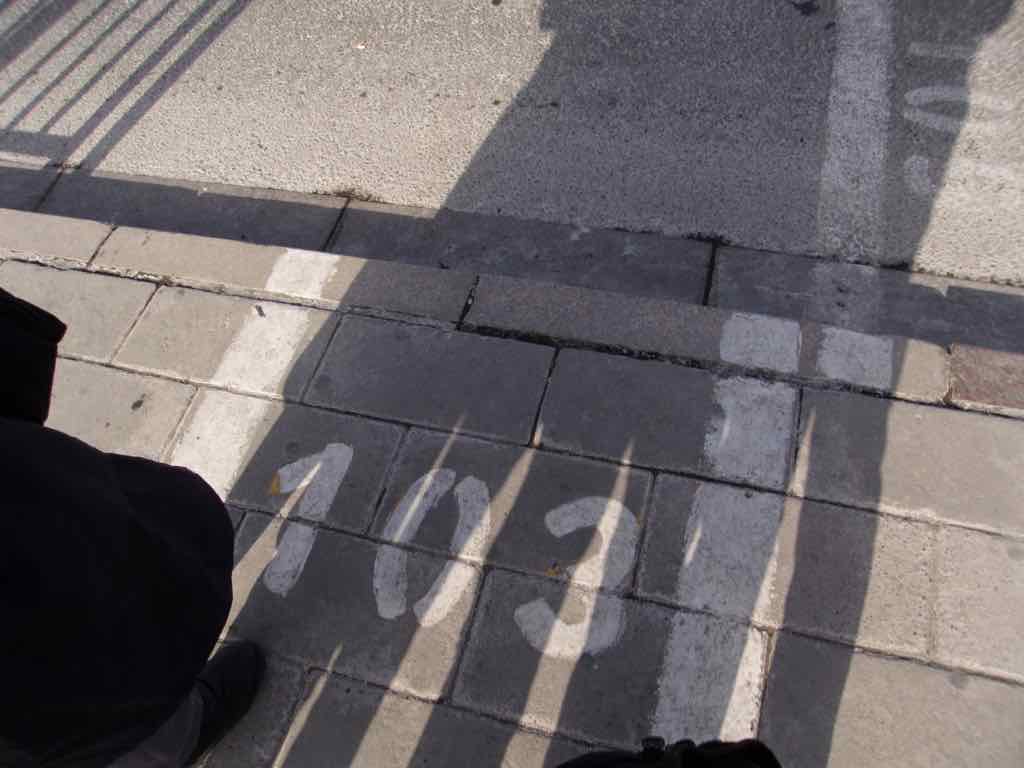 停留所には停止線がしっかり引かれ