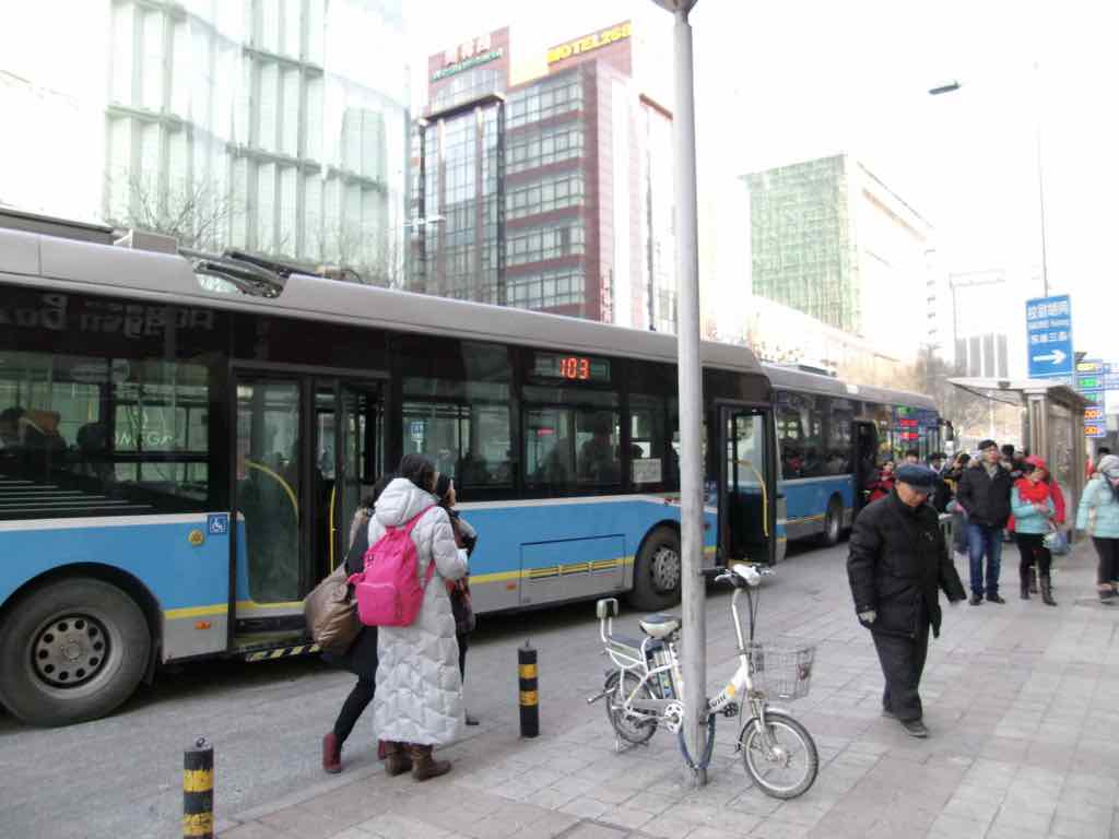 王府井へはトロリーバスで向かいます