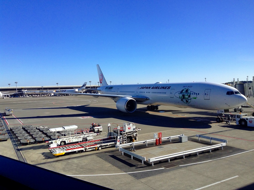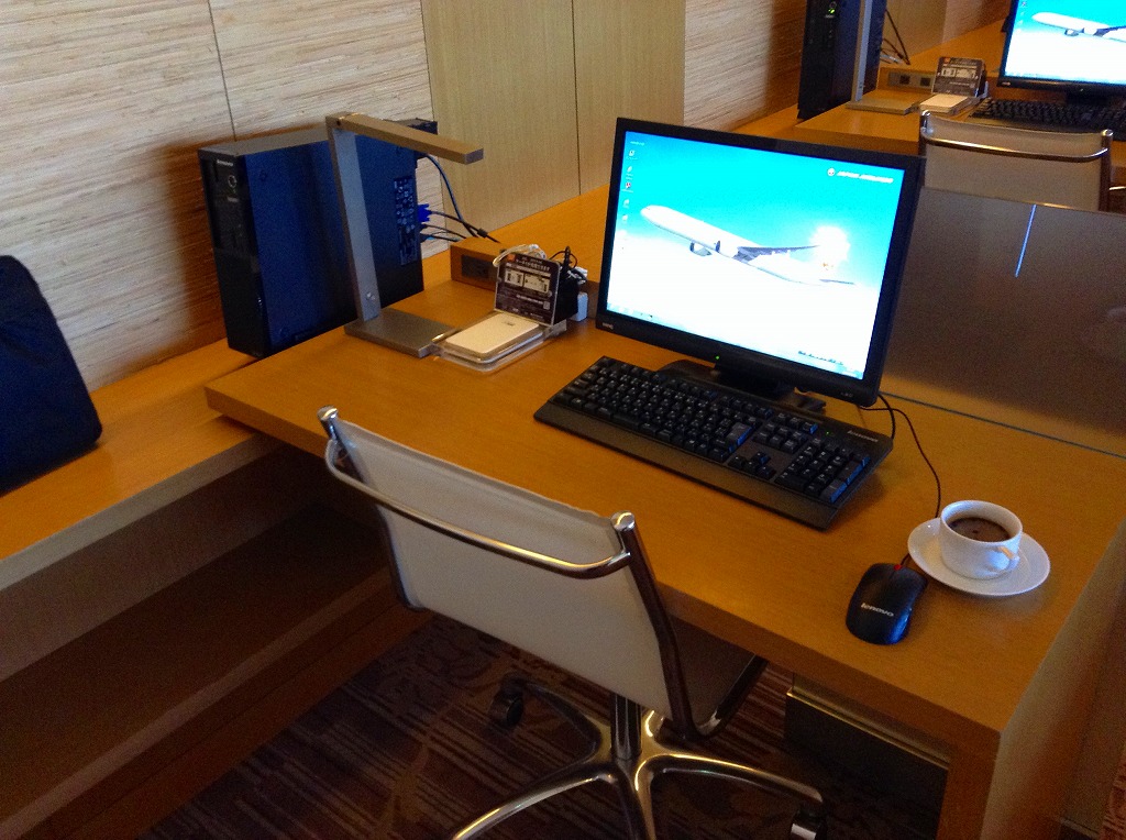 JALのサクララウンジ本館ビジネスコーナーで論文執筆です