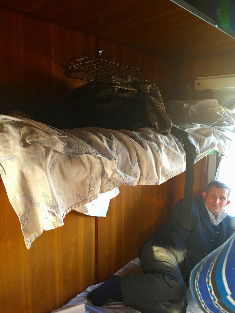 今回はウズべキスタン国鉄の3等車、開放寝台は極小で寝がえり売ったら落ちそう・・・。