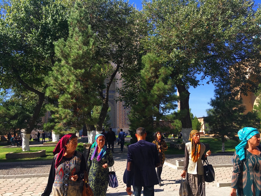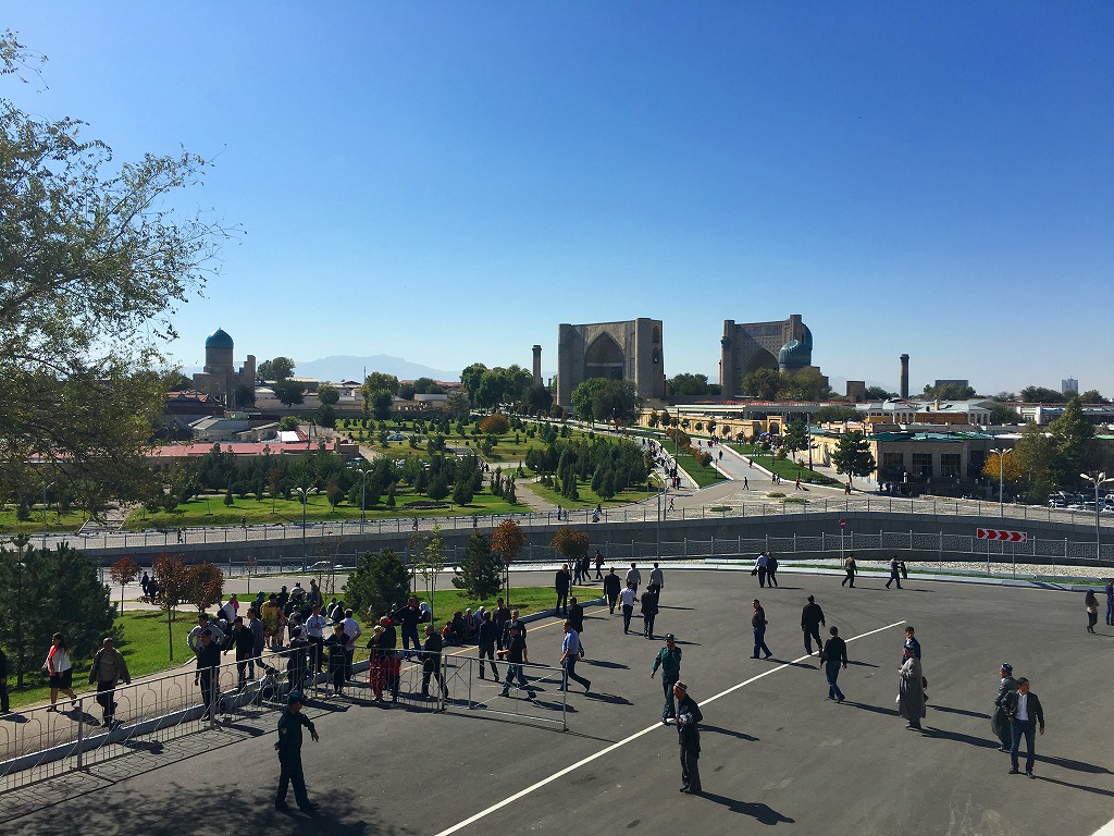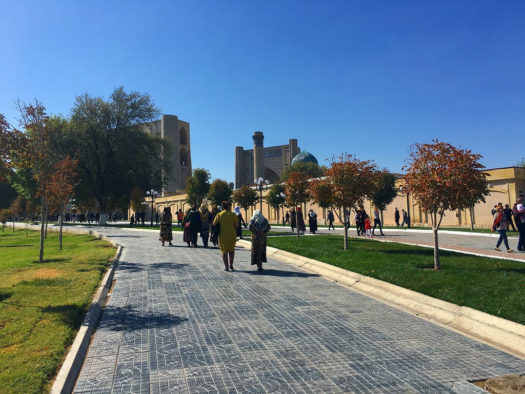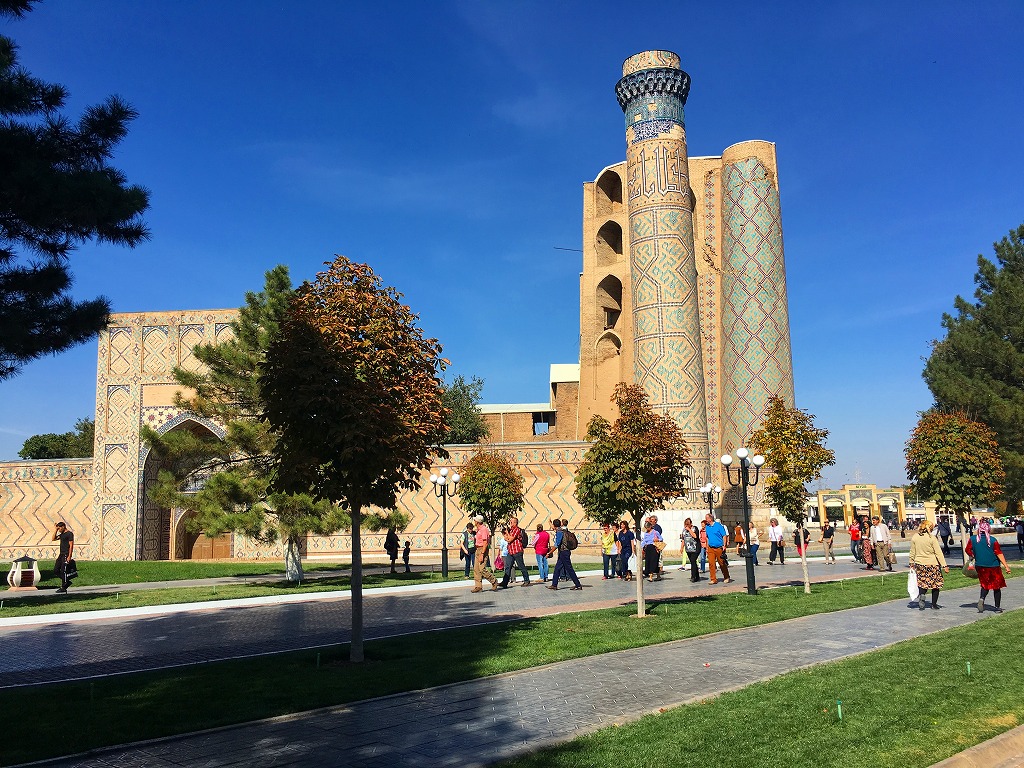 サマルカンドの観光の中心地の一つ多くの顧客が行きかいます