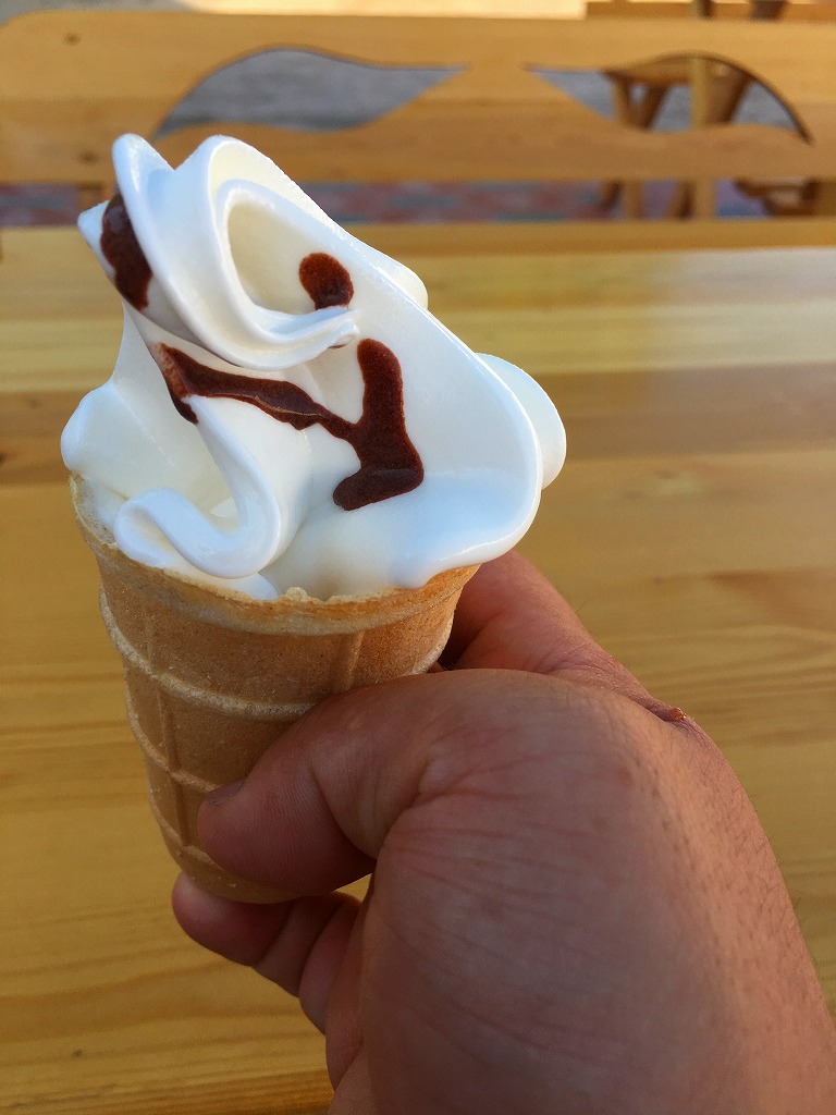 帰り道に買い食い ムズカイモック(ソフトクリーム)1000スム(約17円)