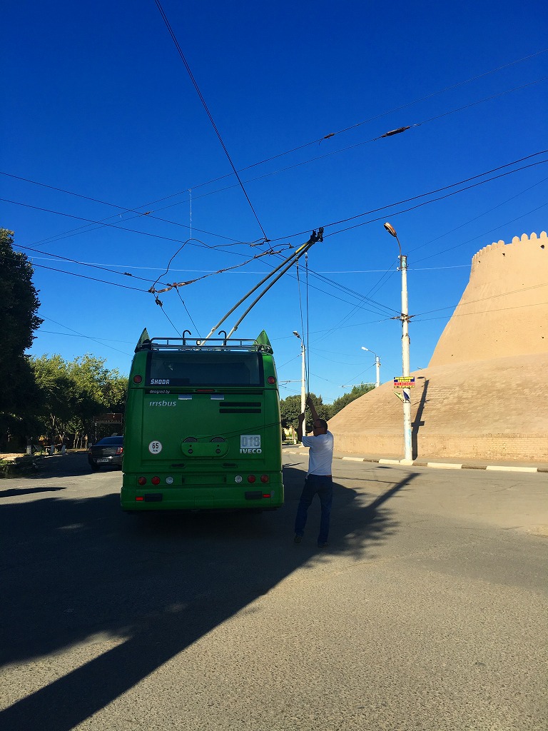 帰宅の道でトロリーバスの車庫入れに遭遇、まずは集電ポールを転線して