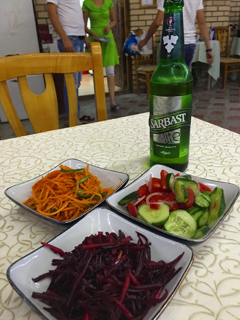 20160902 休日の食事 今日は休日洗濯・掃除のあとは、、、朝食@ミルザボシホテルやっと2冊目を読破、宇山智彦ら編『日本の中央アジア外交ー試される地域戦略』北海道大学出版会、2009年10年弱前の日本と中央アジアの関係がわかりました。昼食はバザールに繰り出しサモサとシャシュリク&ビールはしごして肉シャシュリクとビール@バザール夕食はサラダ&ビール@ミルザボシレストランにほんブログ村ランキングに参加しています、各バナーのいずれかをクリック頂ければ、活動の励みになります(新規ウインドウで開きます)