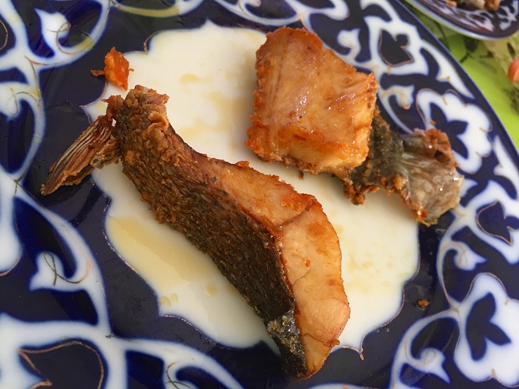 バルク(魚)の唐揚げ、鯉なので小骨が多いけど淡白で美味