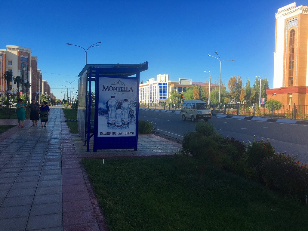 20160911 ウルゲンチをお散歩 今日はウズベク語のレッスンがウルゲンチであったので、その後お散歩整備された街角のウルゲンチのバス停100%広告でバスの案内がないのはこれいかにつづいてローカルスーパーも物色ホラズムに比べて整然としてますなにほんブログ村ランキングに参加しています、各バナーのいずれかをクリック頂ければ、活動の励みになります(新規ウインドウで開きます)