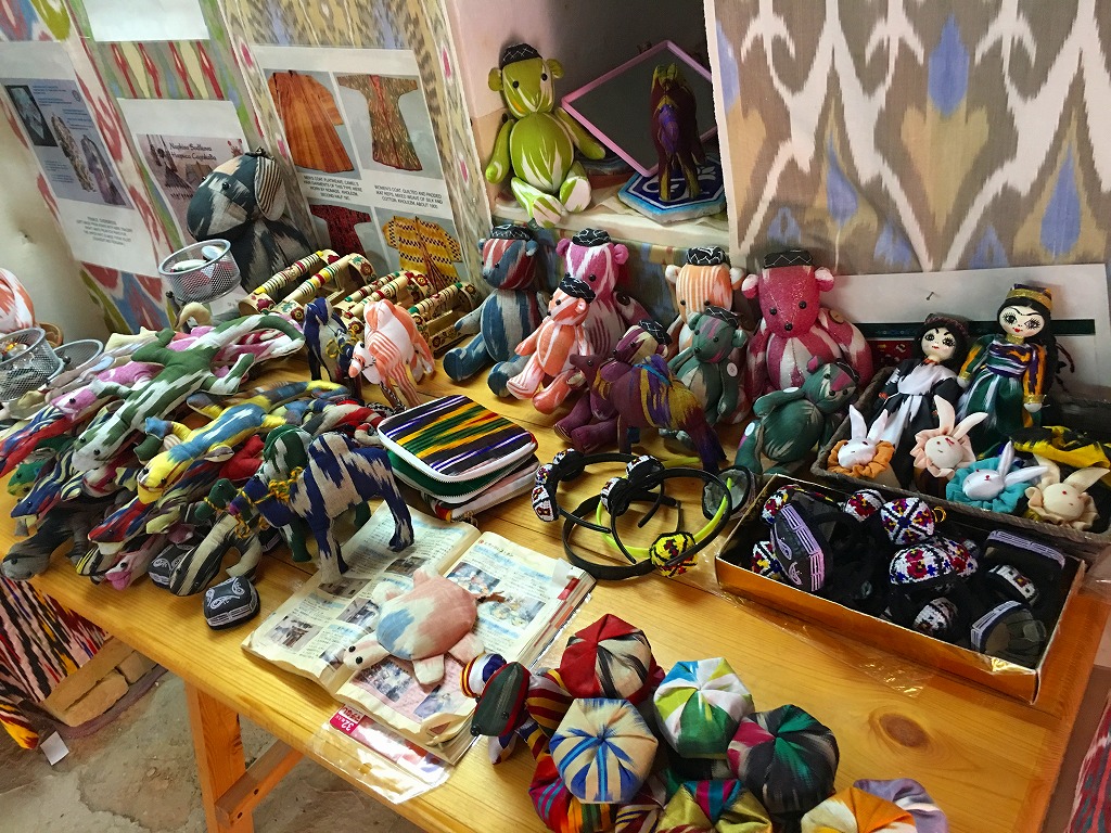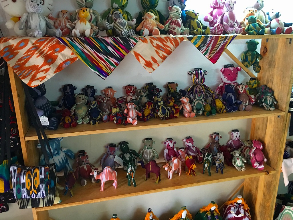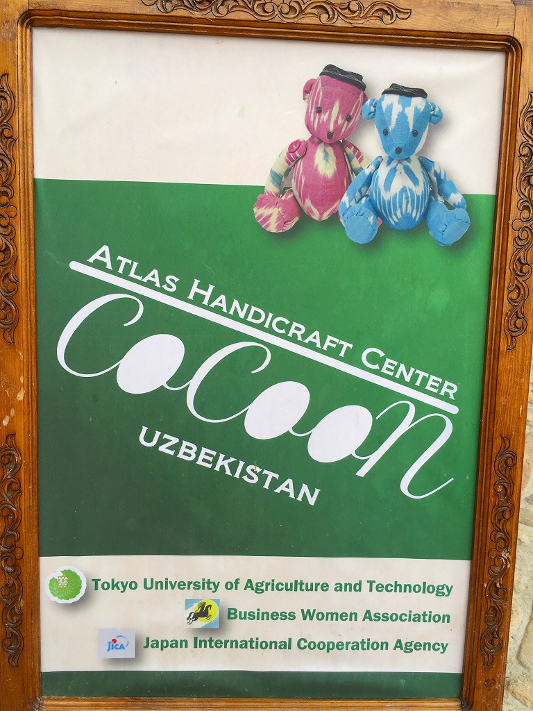 アトラスというウズベキスタン柄のぬいぐるみがお出迎え