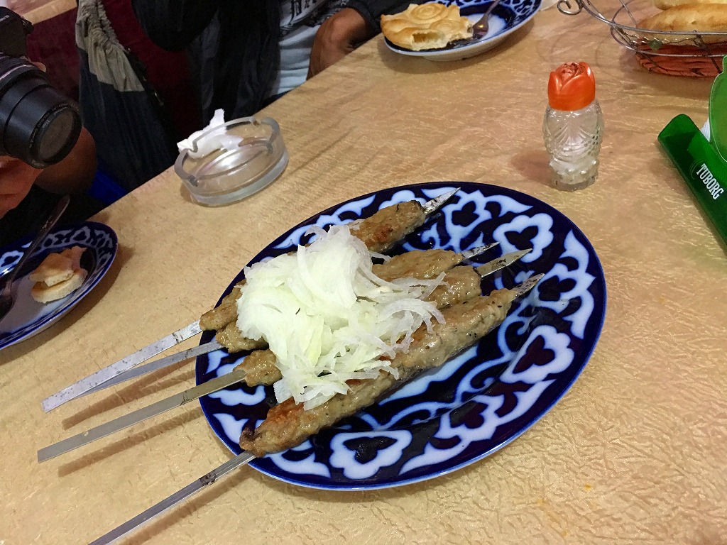 同じ宿にお泊りというバックパッカーさん達と合流し、夕食はヌルラボイ宮殿脇のチャイハナ(ウズベク的居酒屋)へ