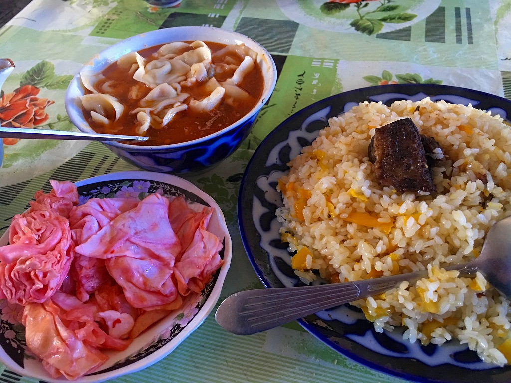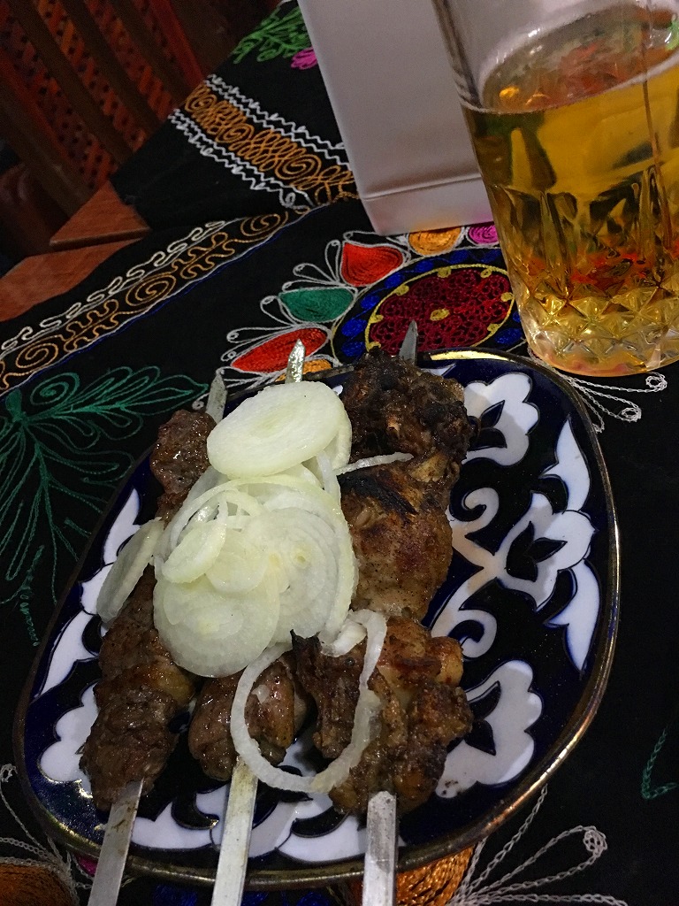 20161204 バックパッカーさんと食い歩き ツーリストさんと落ち合って食い歩きへバザールのチャイハナで昼食ラグモンとプロフ夕食はヌルラボイのチャイハナへスベージーサラダカザンケバブとラグモンそしてテュフンバルック@北門のところのチャイハナ(30,000スム・約444円)はしごしてヌルラボイ宮殿のチャイハナへシャシュリク(14.000スム・約207円)、飲みすぎて自爆にほんブログ村ランキングに参加しています、各バナーのいずれかをクリック頂ければ、活動の励みになります(新規ウインドウで開きます)