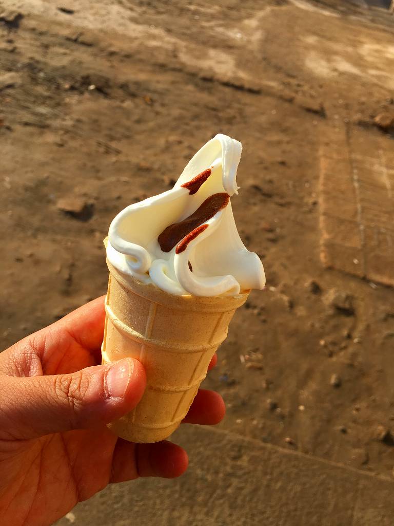 おやつにムズカイモック(ソフトクリーム)はじめ。いつもながらこの国のソフトクリームは激うま