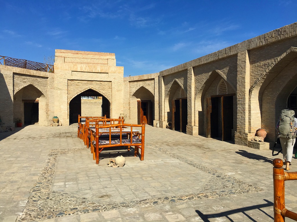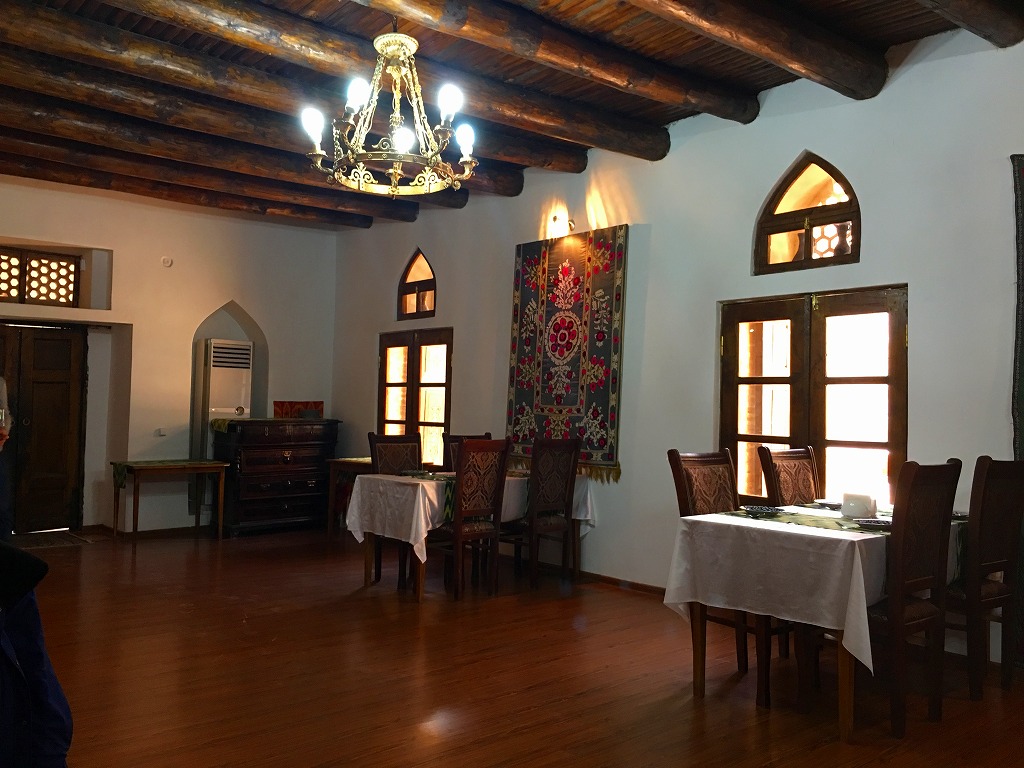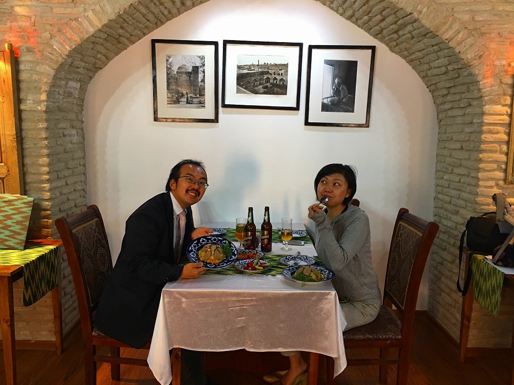 20161113 ブハラでランチ ブハラに到着し、早速ランチですラビハウス脇のレストランブドラディンで昼食、飛び跳ねて喜ぶ観光隊員古きマドラサを改装したレストランですとりあえずビールとサラダブハラのプロフは若干香辛料が入りスパイシー。食事を満喫し、ここで解散ですにほんブログ村ランキングに参加しています、各バナーのいずれかをクリック頂ければ、活動の励みになります(新規ウインドウで開きます)