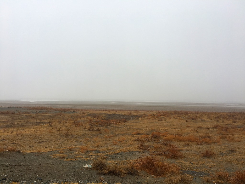 真下を流れるアムダリョ(アム河・アムダリア川)が見えます