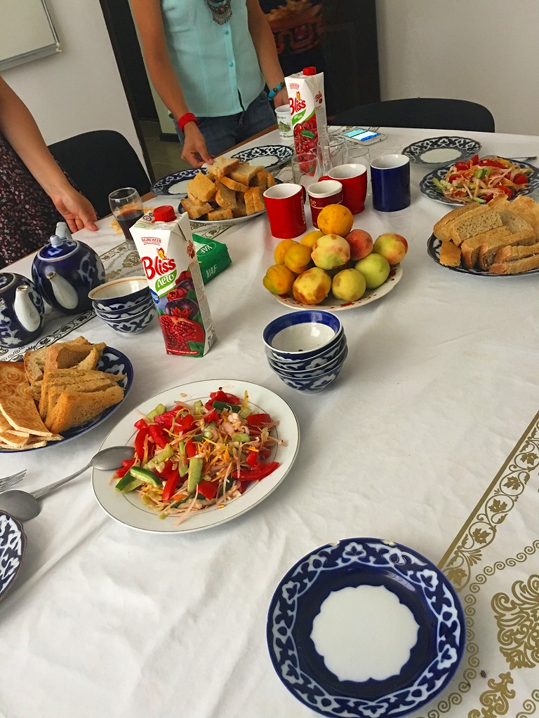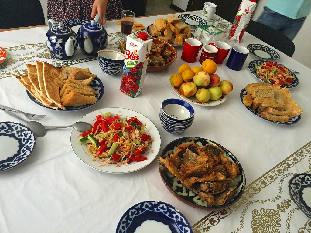 20160812 職場内ウェルカムパーティー オフィスに戻ったらミアサオパが忙しく準備中今日の食卓にはたくさんの食事が並んでいますマスタパも今日は私のウェルカム&シャフノーザさんの結婚祝いパーティーホレズムでは鯉の唐揚げをことあるたびに食べるそう、久しぶりの魚!おいしいにほんブログ村ランキングに参加しています、各バナーのいずれかをクリック頂ければ、活動の励みになります(新規ウインドウで開きます)