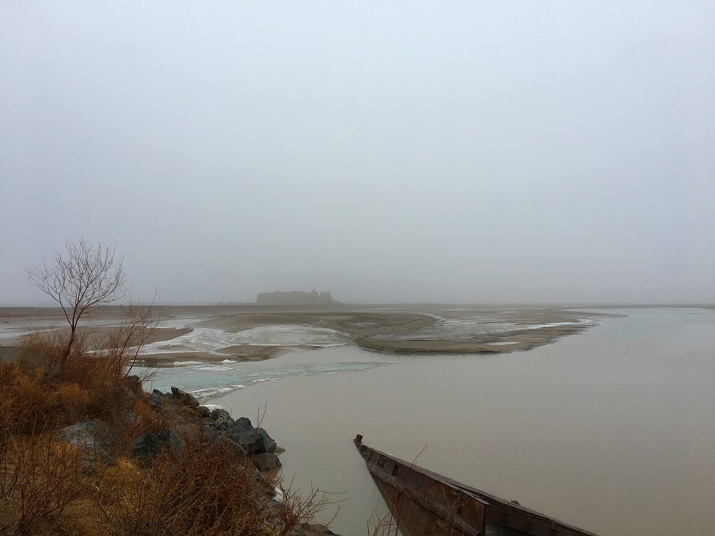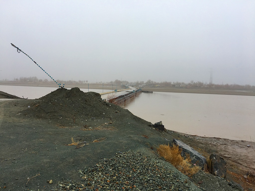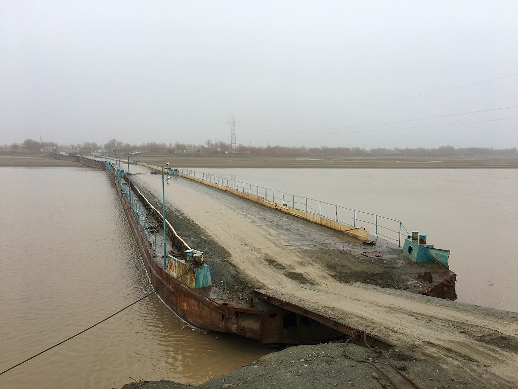 ガウルカラの脇にあるアムダリョを超える浮き橋に