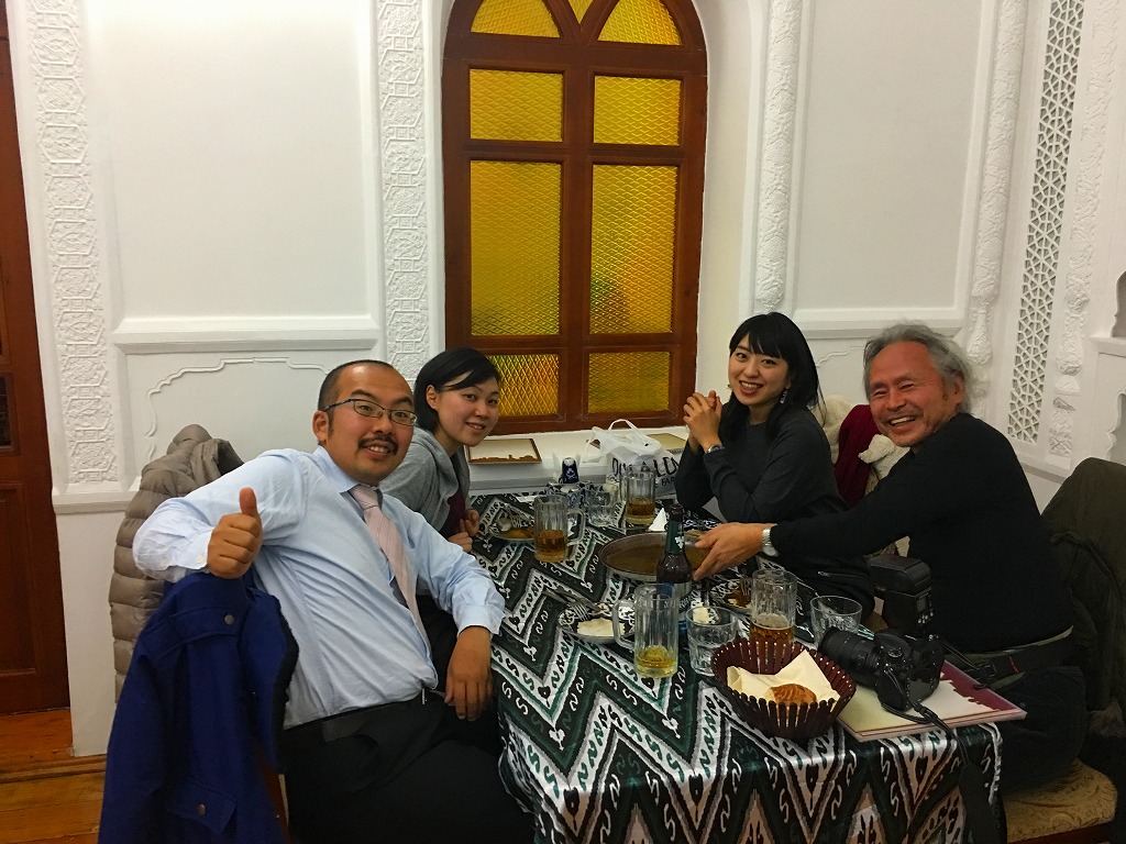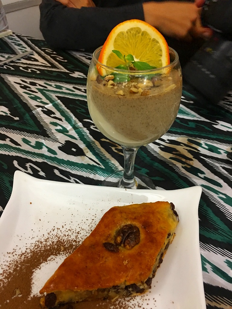 20161118 オールドブハラでディナー ブハラ市内の高級レストランでディナーですオールドブハラレストランでディナー中庭には野外席が室内には陶磁器が展示夕食兼地球の歩き方の編集会議がスタートですこちらはビーツのサラダマスタバジュズ参加メンバーで記念撮影こちらのおすすめはスイーツショコラは中からチョコがとろ~りにほんブログ村ランキングに参加しています、各バナーのいずれかをクリック頂ければ、活動の励みになります(新規ウインドウで開きます)