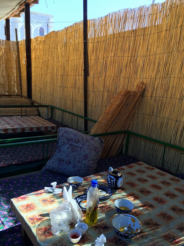 昼食は街角のチャイナヤで(ウズベク語のチャイハナが、カラカルパク語ではチャイナヤになる)