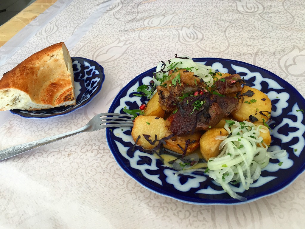 20161015 ショブバザールで腹ごしらえ サマルカンド市民の台所ショブバザールで休憩します。ハズラティ・ヒズル・モスクの向かいにあるショブバザールに向かいます活気あふれる中央アジアの市場ですバザールの片隅にある食堂でカザンケバブとサマルカンドナンを食べましたにほんブログ村ランキングに参加しています、各バナーのいずれかをクリック頂ければ、活動の励みになります(新規ウインドウで開きます)